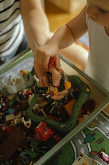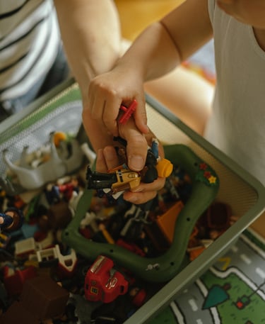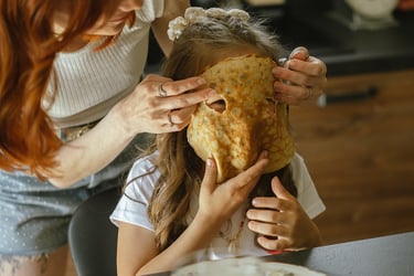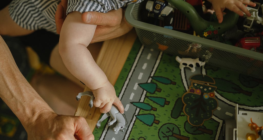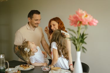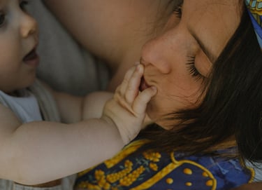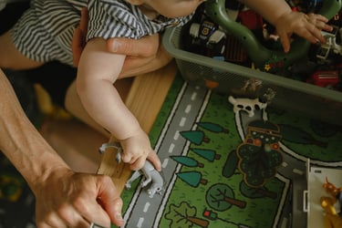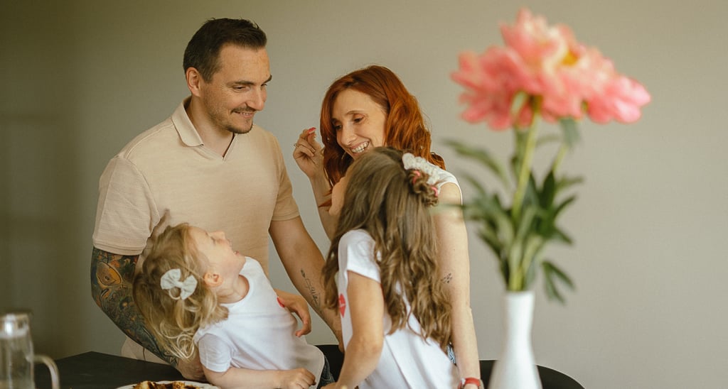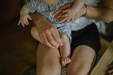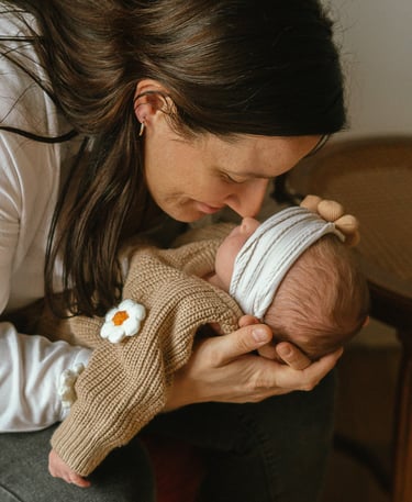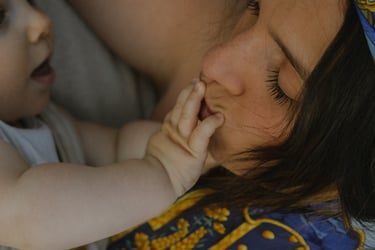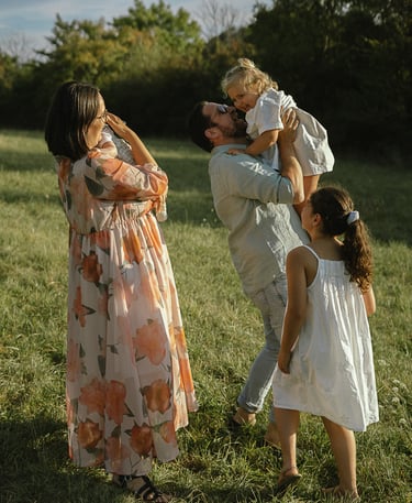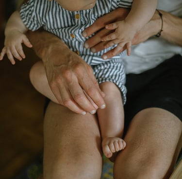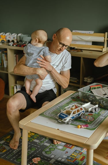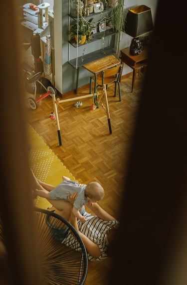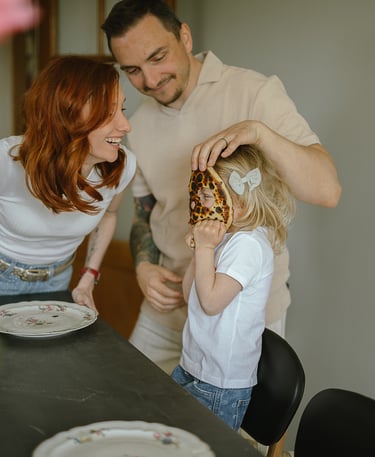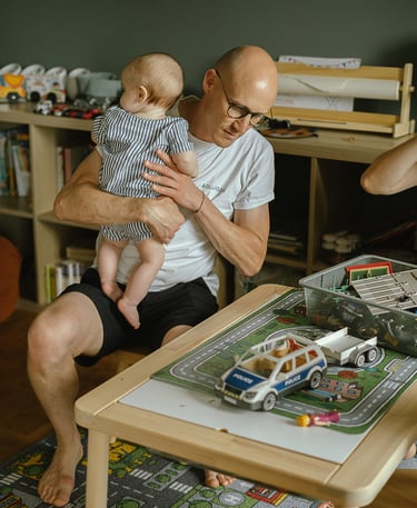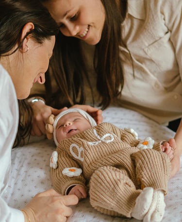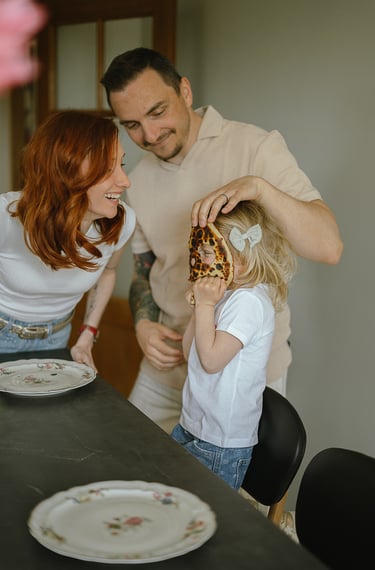 Une séance famille à domicile, entre jeux partagés et câlins.